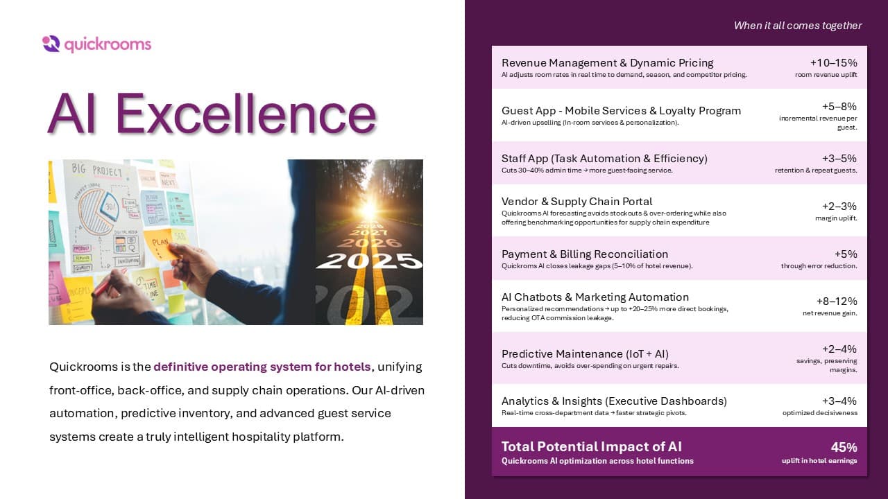 “We built Quickrooms on a simple premise: a hotel should run predictively, not reactively. This means building intelligence, automation, and total visibility into every corner of the operation from day one.”